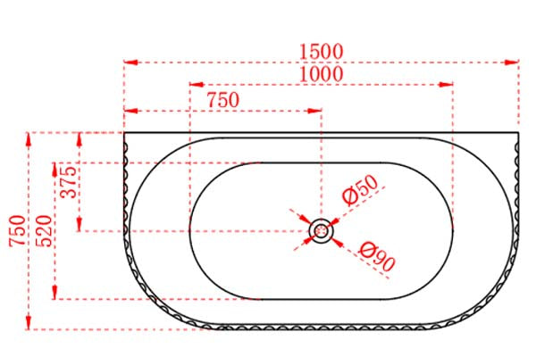 Roma fluted back to wall bathtub 1500/1700 Matte white and Gloss white